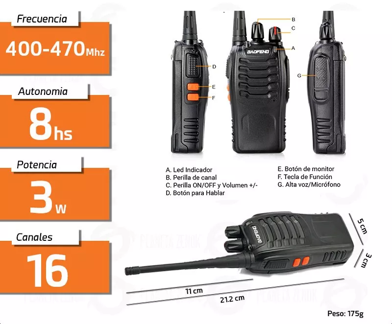 - Rango: UHF 400 ~ 470MHz